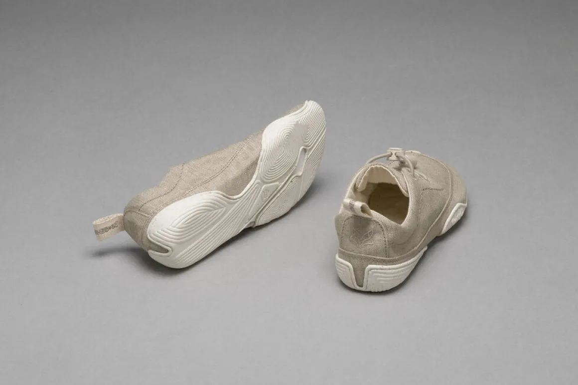 Natur pur: Das Obermaterial des Modells Arun besteht aus einem ungefärbten Leinenstoff in robuster Canvas-Webung. Das Obermaterial ist in Zusammenarbeit mit Wildling Partner VirgoCoop entstanden. VirgoCoop ist eine Genossenschaft mit Sitz in Frankreich, die sich für den Aufbau ökologischer-sozialer Textillieferketten von der Faser bis zum Stoff einsetzt.