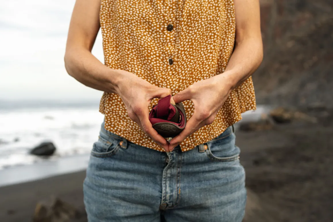 Dass die Sandale bei so wenig Material gleichzeitig einen sehr guten Halt bietet, verdanken wir dem sogenannten Windlass-Mechanismus. Dieser kann mit Hilfe des Riemens über dem großen Zeh optimal wirken und sorgt dafür, dass die Sohle stets am Fuß anliegt.