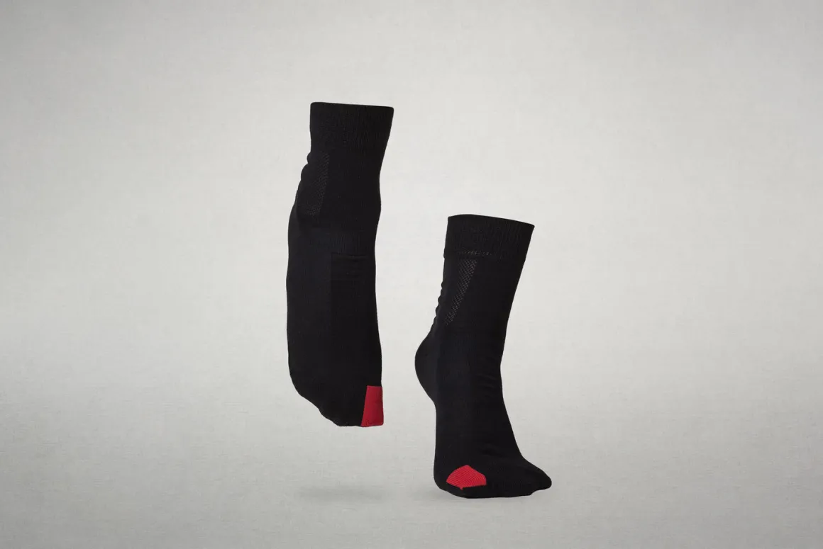 Der schwarze Admiralfalter ist eine Socke mit normaler Schafthöhe, die an die natürliche Fußform angepasst ist.