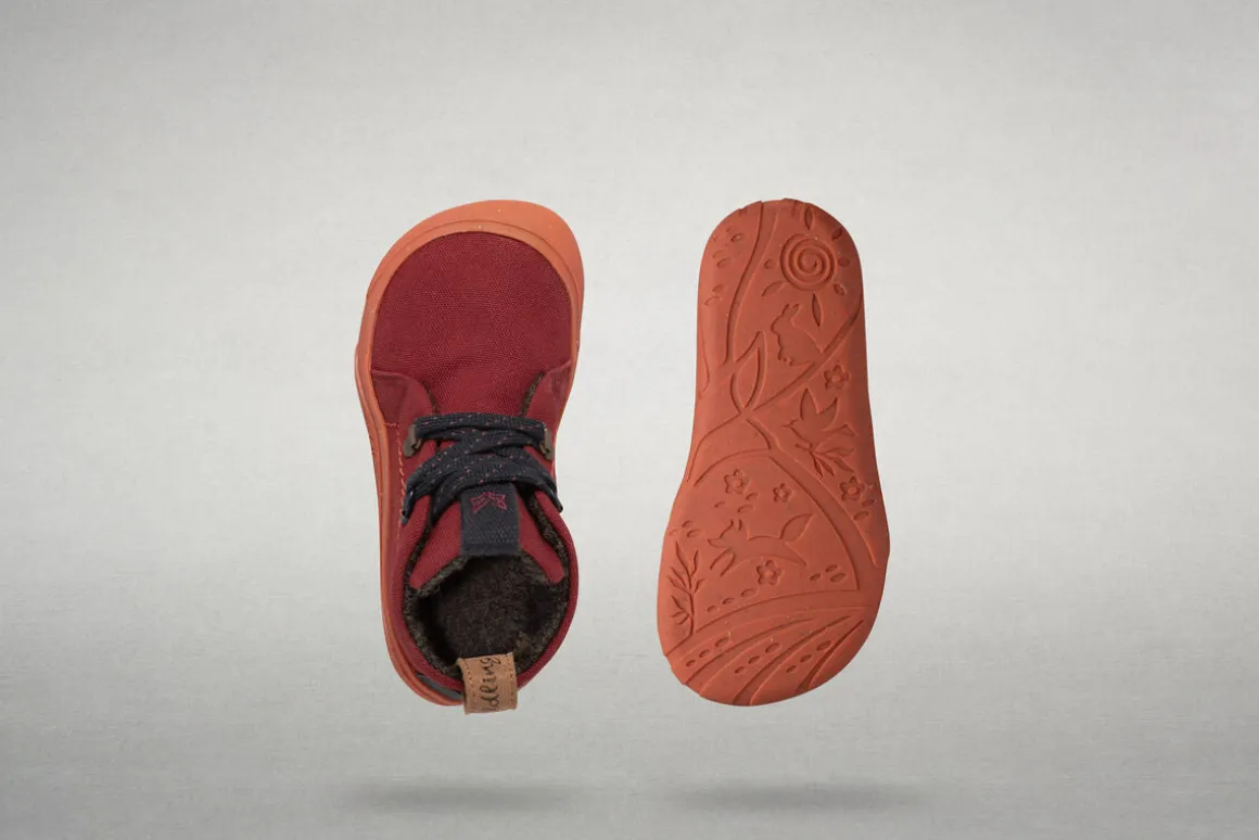Wer auch bei Wind und Wetter nicht auf Wildlinge verzichten möchte, ist mit dem robusten Tejo bestens beraten: Dank seines außergewöhnlich dicht gewebten Obermaterials aus recycelter Baumwolle, einer eingearbeiteten Membran und ab Größe 23 auch mit Wasserlasche hält der Mid Cut unsere Füße besonders lange trocken.