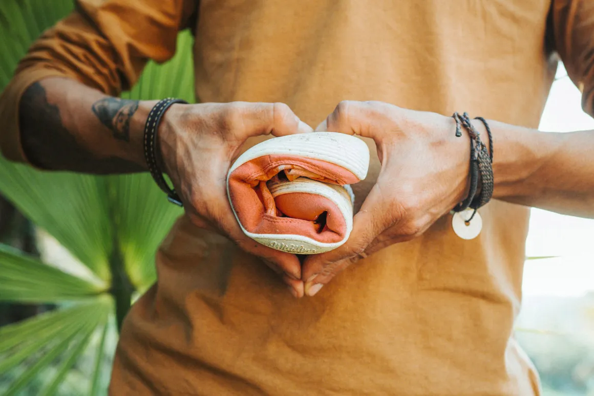 Mit der Pure Sole vereint Borbo das Beste aus zwei Welten: Einerseits bietet uns der geschlossene Sohlenspalt ein wenig Schutz, wenn uns der Frühling mit einem Schauer überrascht. Andererseits ermöglicht uns die Sohle das besondere Wildling Tragegefühl – leicht und frei, (fast) wie ein Schmetterling.