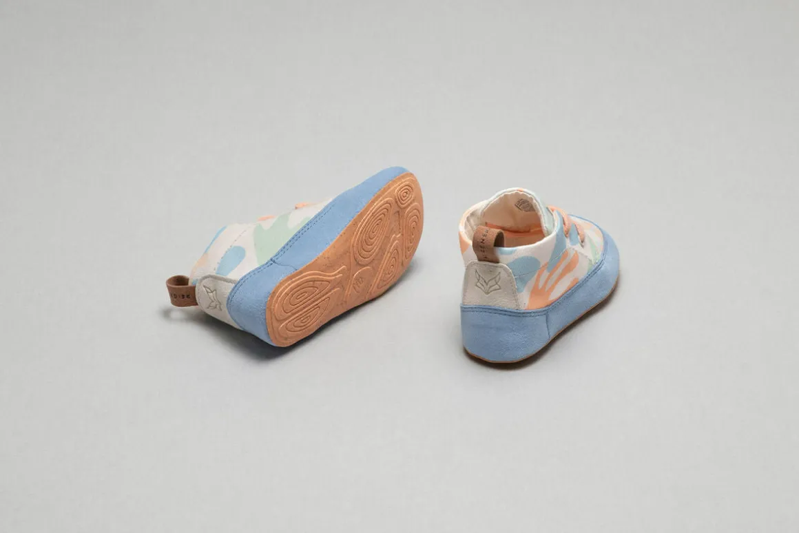 In der Variante für Erwachsene zeigt sich der Wildling im Sneaker-Style zurückhaltend und dezent: Das Obermaterial – 100 Prozent Baumwolle aus biologischem Anbau – ist ungefärbt und kombiniert sich prima zu verschiedensten Outfits. Die Varianten für Kinder und Kleinkinder beweisen dagegen Mut zur Farbe: Frische Naturprints mit schönen Pastelltönen wecken nicht nur die Abenteuerlust, sondern laden zur Spurensuche ein: Welche Tierspuren könnten im Printmuster zu entdecken sein? Und finden wir diese auch in der echten Natur? Mit Laufsohlen in Hellgrün (Kinder) und Apricot (Kleinkinder) erkundet sich die Welt gleich nochmal so gut.