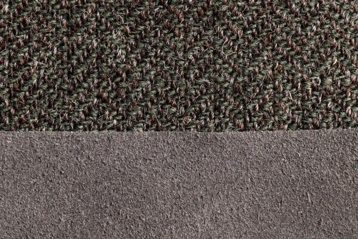 Das Obermaterial mit feinem Fischgratmuster besteht aus zwei Wollsorten: ungefärbte Wolle vom deutschen Landschafmix in naturmeliertem Braun in Kombination mit heller Wolle, die mit Färbepflanzen natürlich grün gefärbt wurde.